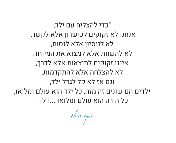 הדרכת הורים נועדה בדיוק לשם כך: בעזרת כלים ומיומנויות ניצור מערכות יחסים ואווירה משפחתית מיטיבה ובכך נסייע לילדים ולכם ההורים להתגבר על האתגרים השונים, כאשר המפתח להצלחת התהליך הוא עבודה על תקשורת מקרבת ושיח חיובי ומעצים